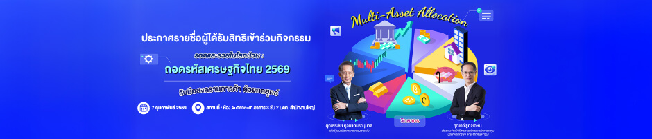 ประกาศรายชื่อผู้ได้รับสิทธิ์ เสวนา “รอดและรวยในโลกป่วน: ถอดรหัสเศรษฐกิจไทย 2569 รับมือสงครามการค้า ด้วยกลยุทธ์ Multi-Asset Allocation” ตรวจสอบสิทธิของท่านที่นี่ กรุณาใส่ หมายเลขอ้างอิง และ ชื่อ-นามสกุล ผู้ถือหุ้นกู้ ที่ท่านใช้ลงทะเบียนในช่องด้านล่างนี้ หมายเลขอ้างอิง ชื่อ-นามสกุล ผู้ถือหุ้นกู้ รายละเอียดกิจกรรม